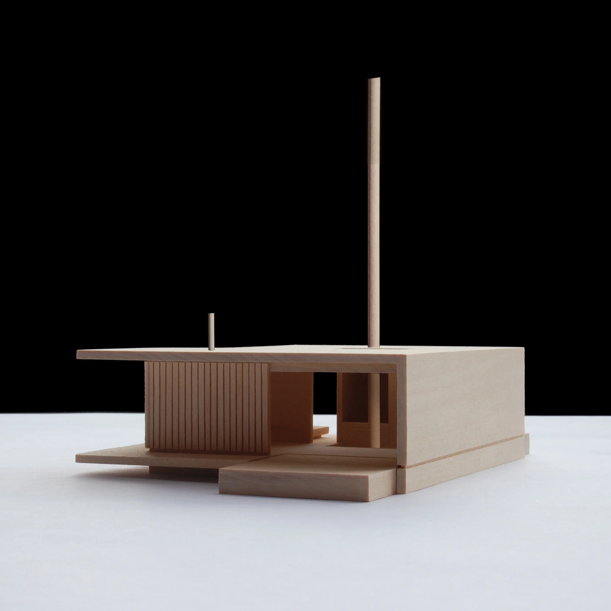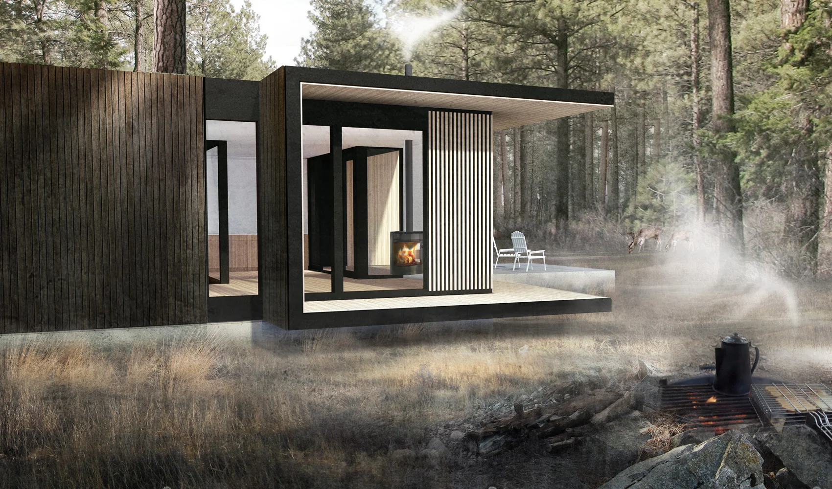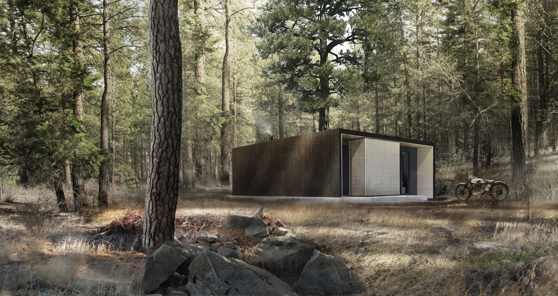 This taciturn little cabin is one of eight designs in a limited line of flat-pack cabins commissioned by Form & Forest, a new Canadian company. This series of simple, modern cabins synthesize and resolve the conflict between building generically and building specifically; the designs have been conceived of with no particular site in mind, yet they can be easily fine-tuned to specific sites, geographies, orientations and climates, intentionally.