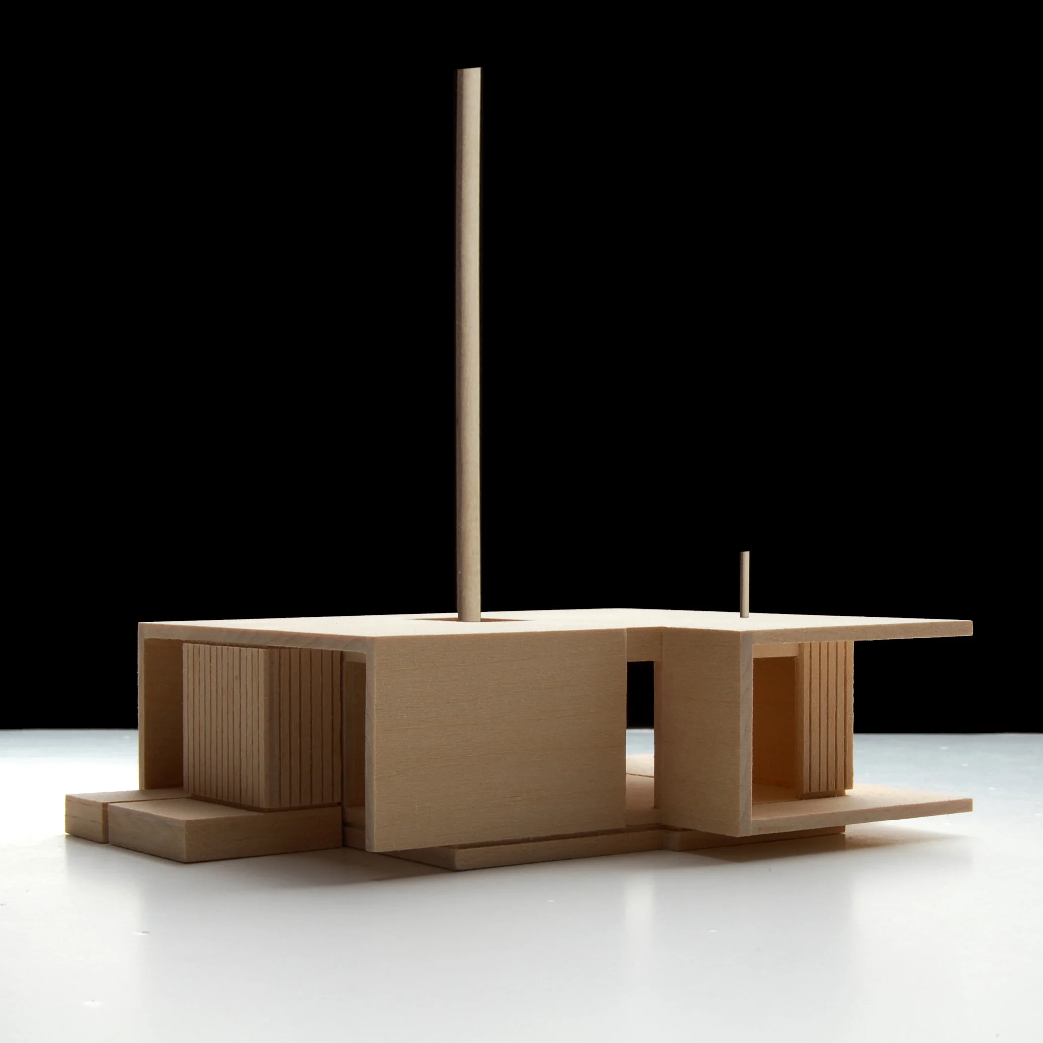 By assembling the cabin's precast and prefabricated building modules around one mature tree on the cabin's site, the simple question "which came first, the tree or the cabin?" becomes a dynamic presence from all interior spaces. By locating the terrace, deck and main floor level 2'-0" above the ground, flat sites and uneven sites are both deferred to and allowed for. The cabin's massing is either gracefully hovering above or heavily embedded into the ground, articulating the duality of temporality and permanence that defines a cabin / camp in the wilderness.